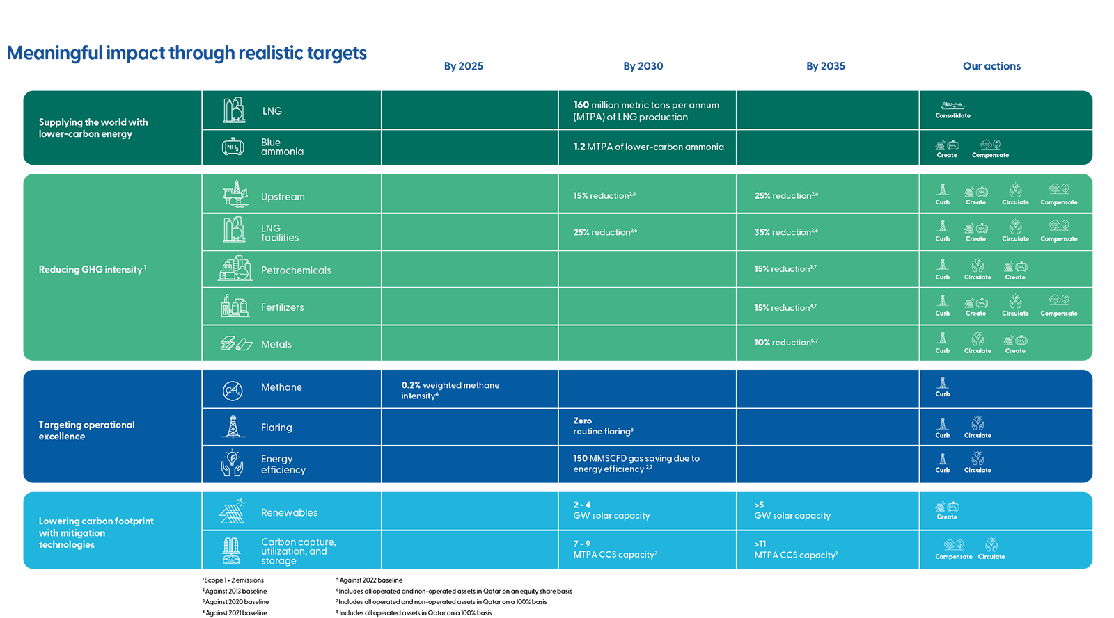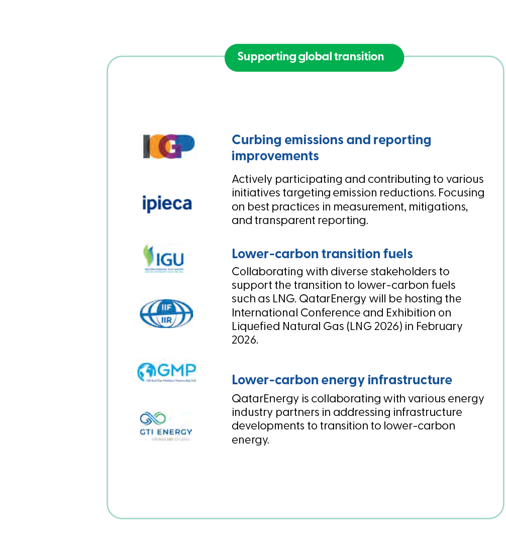 Mitigating methane emissions is a top priority for QatarEnergy. We are a member of the Oil and Gas Methane Partnership (OGMP 2.0) and the Methane Guiding Principles (MGP), as well as a signatory of the Oil and Gas Climate Initiative’s (OGCI’s) Aiming for Zero methane emissions initiative. We are aiming at achieving near-zero methane emissions across all our operations.