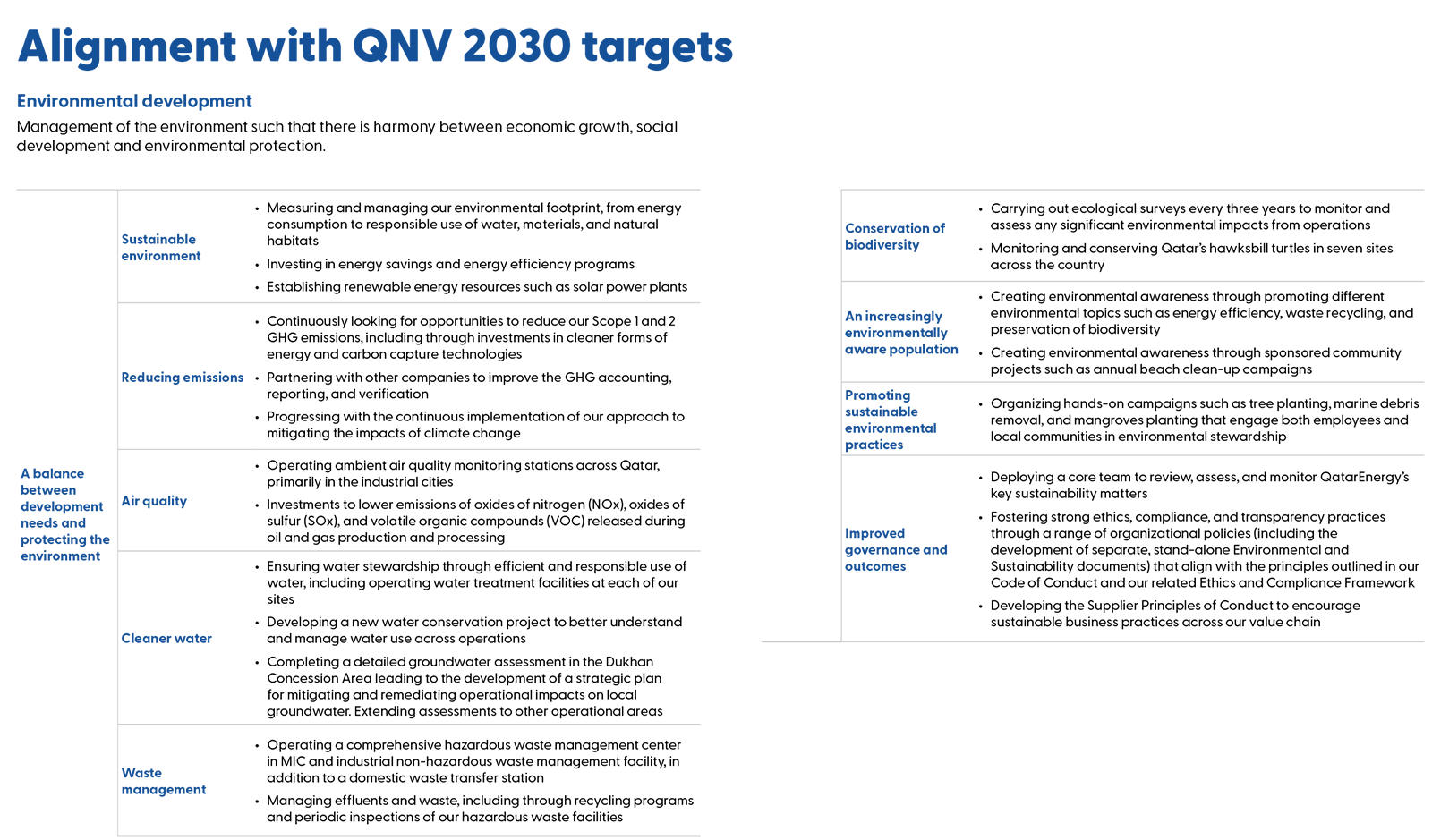 The table below shows QatarEnergy’s contributions aligned with QNV 2030 targets.