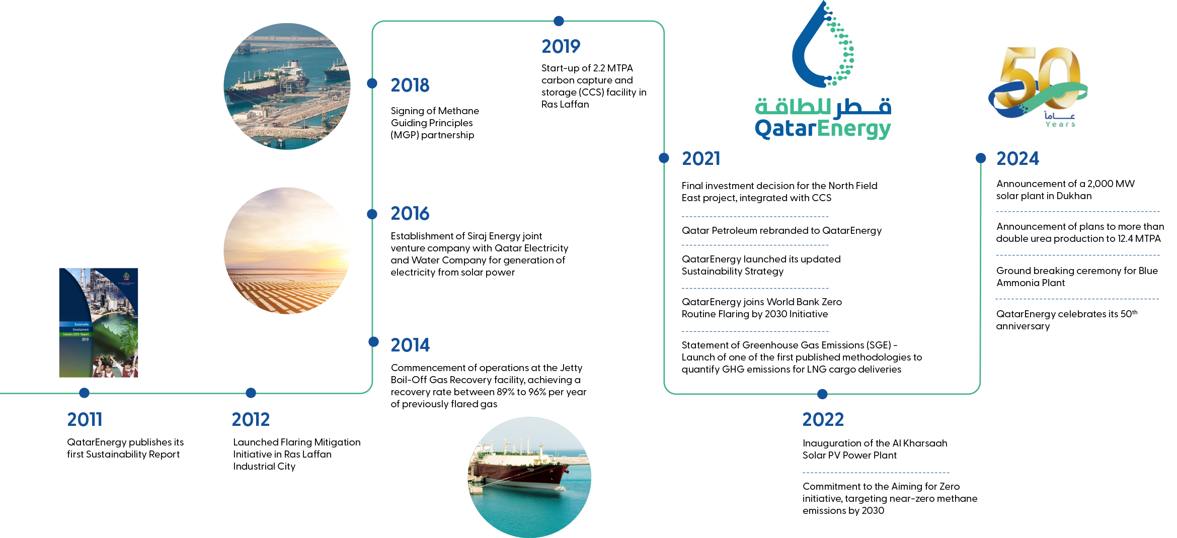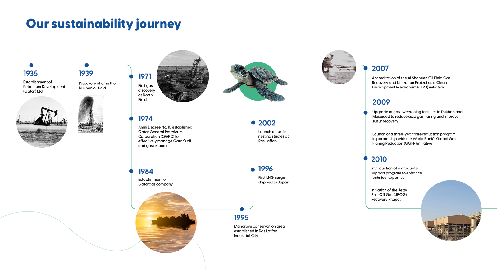 At QatarEnergy, we recognize the critical importance of sustainability. We are committed to sustainable development of our business, our people, and broader society. We show this by adopting a comprehensive and integrated approach addressing the challenges posed by climate change, taking action to mitigate impact on the environment, ensuring safe and responsible operations, and contributing to overall social and economic development. We believe that by integrating sustainability in our businesses and operations, we can contribute to building a better future for all.​